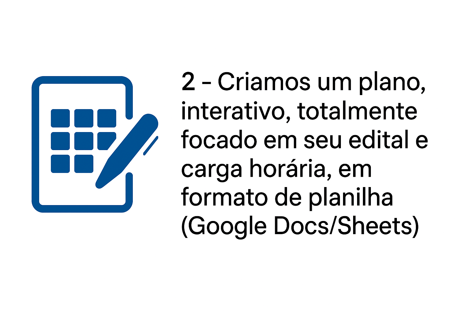 Construimos um plano de estudos para você, focado no edital do seu concurso, para você estudar com eficiência e chegar na sua aprovação mais rapidamente!